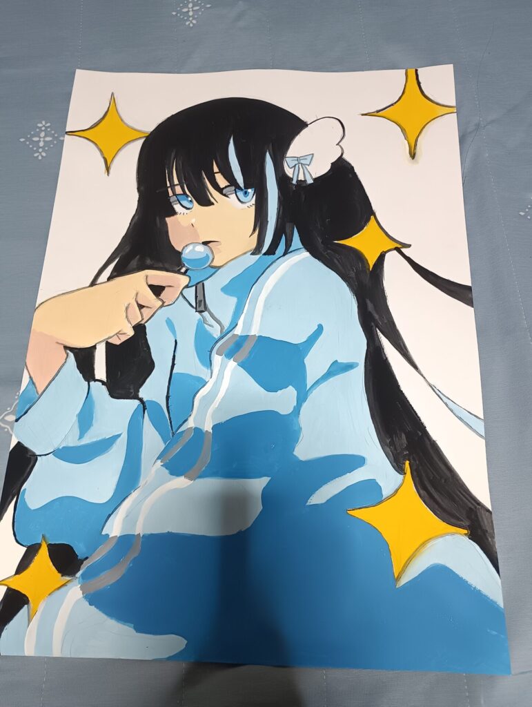 アナログのイラストだけど少しデジタルっぽい雰囲気の絵にしました!色の統一感にこだわりました!