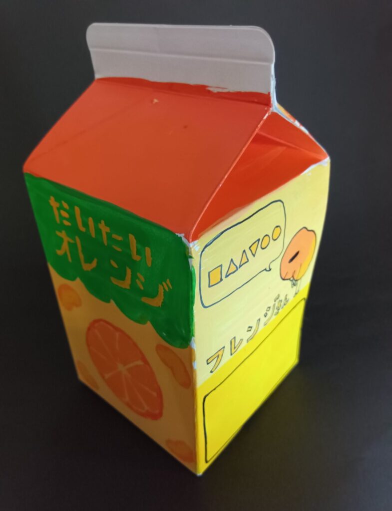 250904104802899 「だいたいオレンジ」(期間限定フレンジさんパッケージ) 作者 吉田 香夏(高校 2年生) 校舎 星槎国際八王子 サイズ 14cm×9cm×7cm 備考 キットにアクリル絵の具で着色